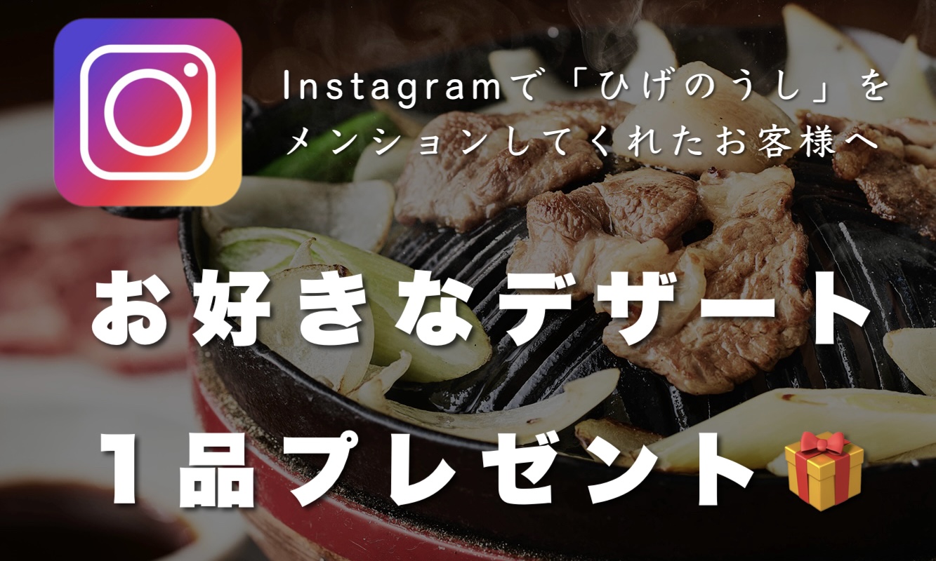 ひげのうし(@higenoushi.011)をメンションしてくれたお客様に、お好きなデザート1品プレゼント!!