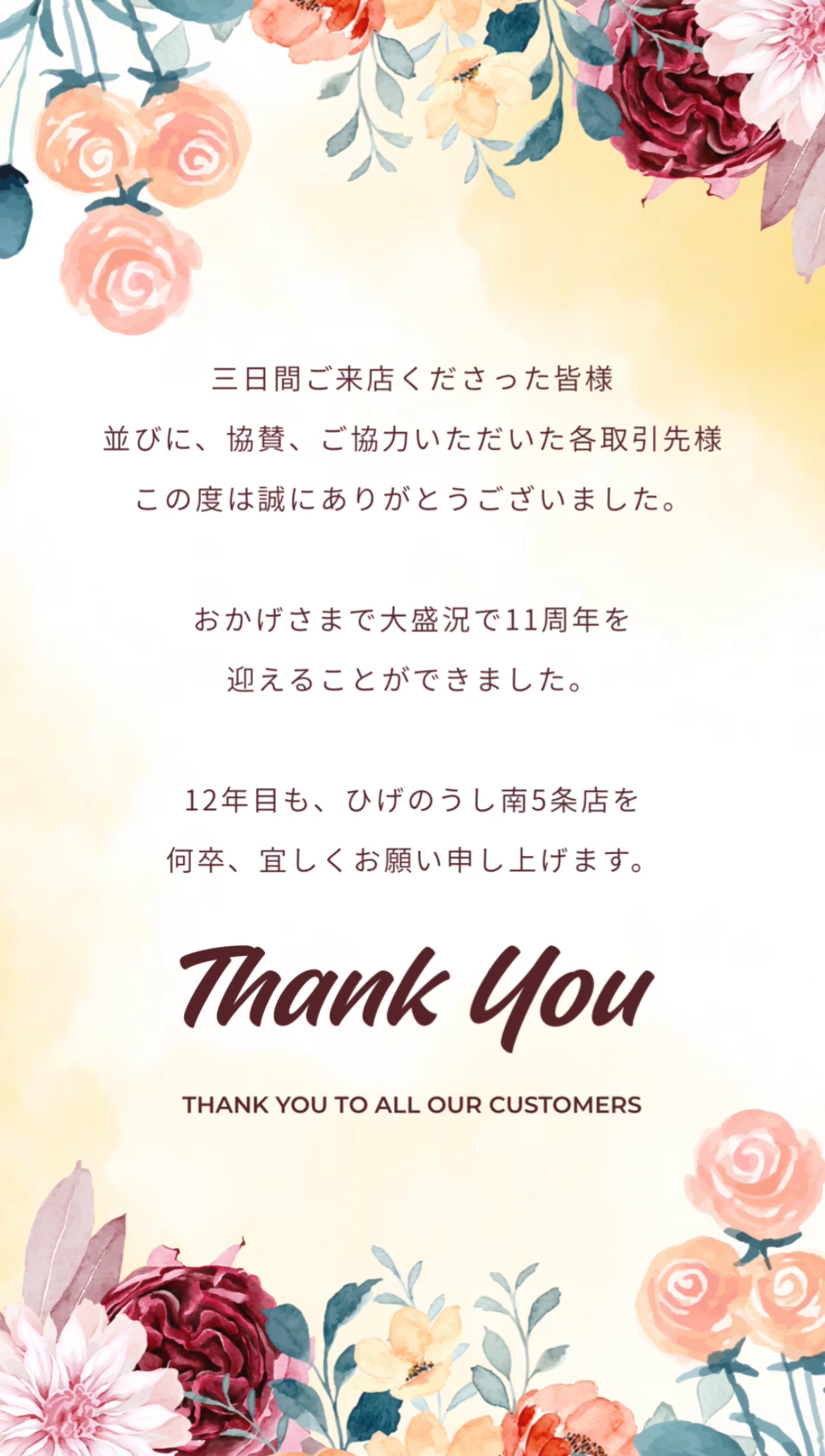 【南5条店】 11周年 感謝のご挨拶